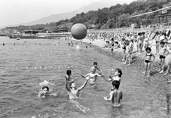 На пляже пионерского лагеря "Озерный" - одной из десяти здравниц "Артека".