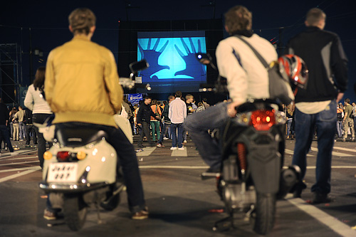 Показ мультфильмов на крыле Дворцового моста в рамках фестиваля "Графффест"
