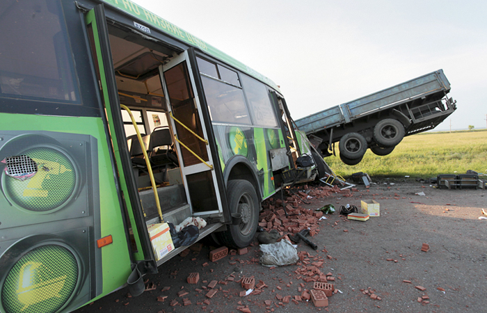 В среду в Омской области произошло столкновение автобуса, перевозившего 22 работника птицефабрики, и грузовика с прицепом. Погибли 16 человек, 11 пострадали.