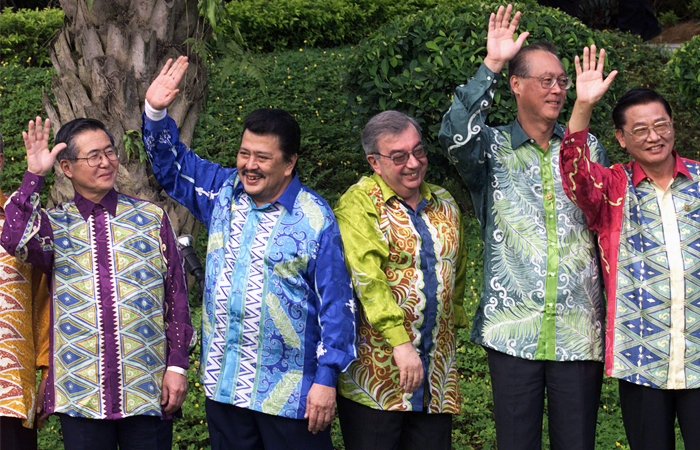 Президент Перу Альберто Фухимори, президент Филиппин Джозеф Эстрада, премьер-министр России Евгений Примаков, премьер-министр Сингапура Го Чок Тонг, глава делегации Тайваня Чан Пин-кун (слева направо) во время форума "Азиатско-Тихоокеанское экономическое сотрудничество", ноябрь 1998 год