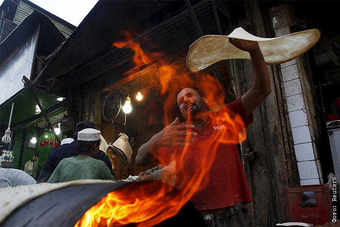 Пакистанский торговец едой в процессе готовки
