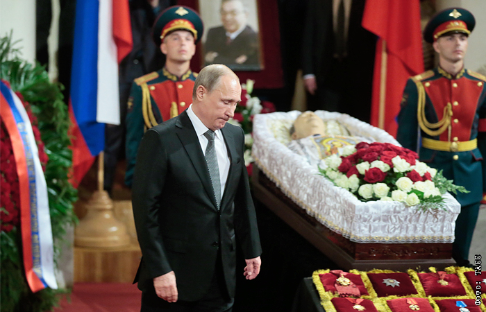 Президент РФ Владимир Путин во время церемонии прощания с политиком Евгением Примаковым