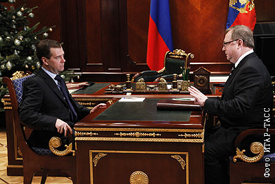 Президент РФ Дмитрий Медведев и председатель Счетной палаты РФ Сергей Степашин во время встречи в резиденции "Горки"