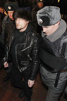 Задержание сотрудниками милиции молодого человека на Манежной площади, где в связи с сообщениями о возможных беспорядках были усилены меры безопасности