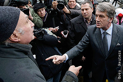 Бывший президент Украины Виктор Ющенко у здания Генпрокуратуры, куда он прибыл для дачи показаний по делу об отравлении осенью 2004 года