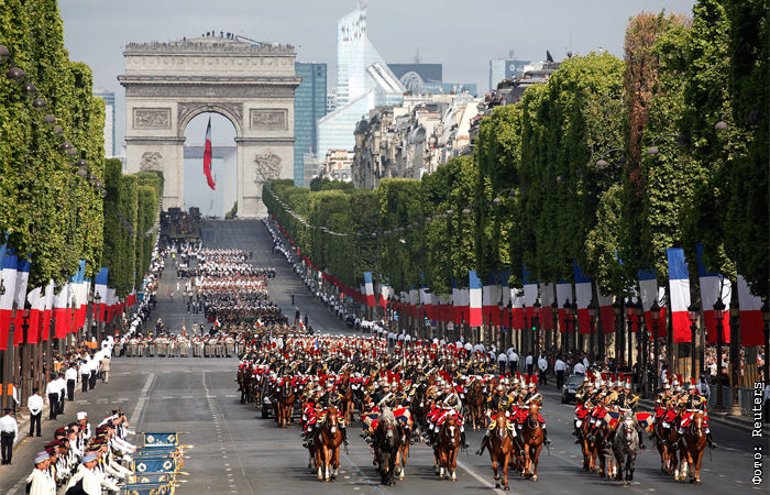 В Париже проходит традиционный военный парад в честь Дня взятия Бастилии, который в этом году посвящен французскому движению Сопротивления, существовавшему во Франции в годы Второй мировой войны. В параде принимают участие три с половиной тысячи военных и 280 единиц техники. В авиашоу задействовано 55 самолетов и три десятка вертолетов. Завершится День взятия Бастилии традиционным фейерверком у Эйфелевой башни на Марсовом поле. Взятие крепости-тюрьмы Бастилии 14 июля 1789 года считается началом Великой французской революции, в результате которой в стране была свергнута монархия. День взятия Бастилии празднуется ежегодно начиная с 1880 года.