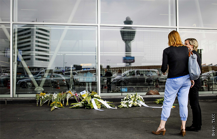 Цветы в память погибших при крушении рейса MH17 в амстердамском аэропорту Схипхол