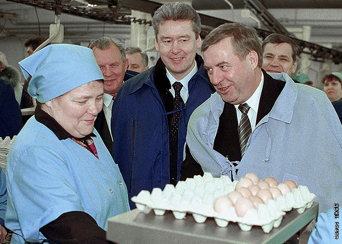 2001 год. Геннадий Селезнев (на снимке справа), находясь в рабочей поездке по Тюменской области, встретился с трудовым коллективом крупнейшей в России птицефабрики "Боровская". В центре - губернатор Тюменской области Сергей Собянин.