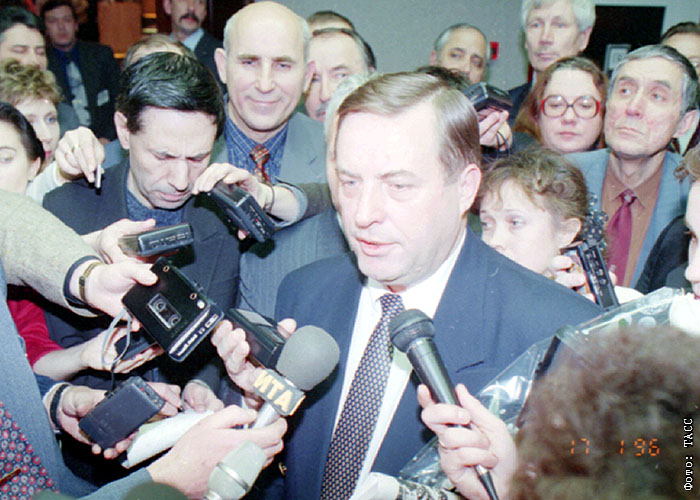 1996 год. Геннадий Селезнев общается с журналистами после избрания его председателем Государственной Думы.