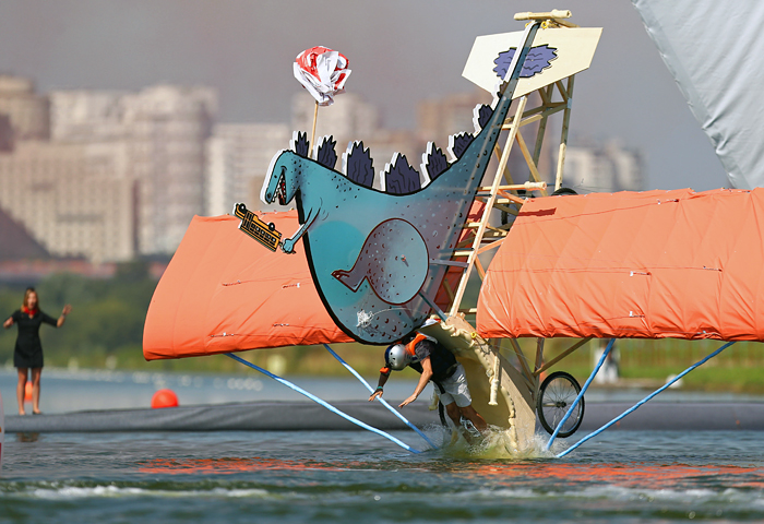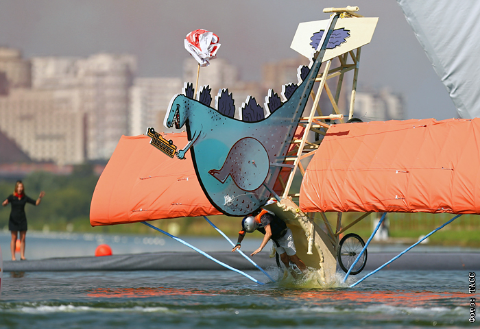 В воскресенье в Крылатском прошел чемпионат самодельных летательных аппаратов Red Bull Flugtag 2015. Участники соревновались в дальности полета, креативности своих конструкций и оригинальности выступления команды.