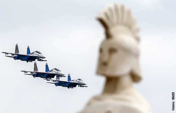 Выступление пилотажной группы "Русские витязи" на церемонии открытия