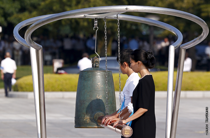 В 08:15:01 - точно в момент взрыва 6 августа 1945 года американской атомной бомбы над Хиросимой - состоялась минута молчания