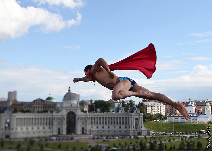 Чешский спортсмен Михал Навратил в финале соревнований по прыжкам в воду с вышки 27 м на XVI Чемпионате мира по водным видам спорта в Казани