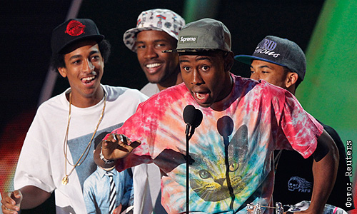 Tyler, The Creator м члены группировки Odd Future объявляют награду за лучшее хип-хоп видео, которую получила певица Nicki Minaj.