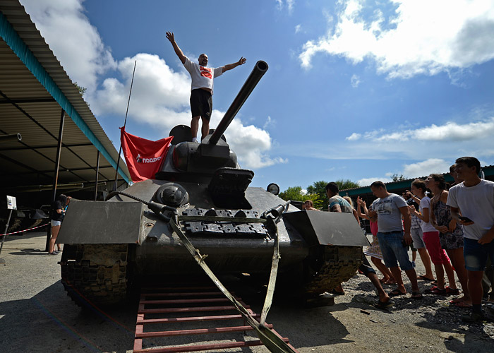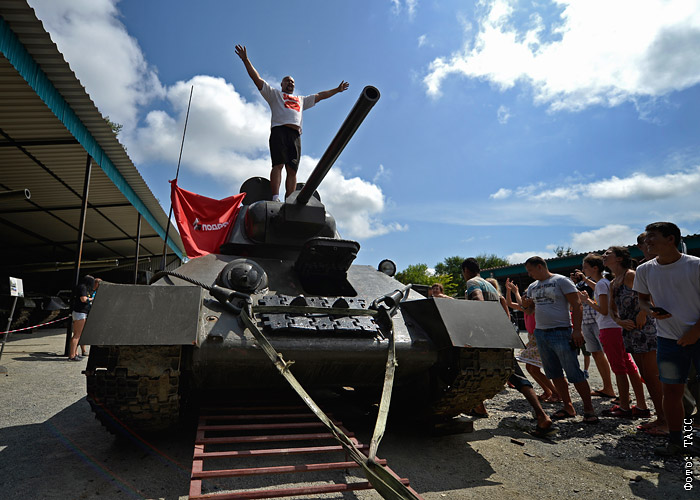 Силач Иван Савкин сдвинул с места танк Т-34