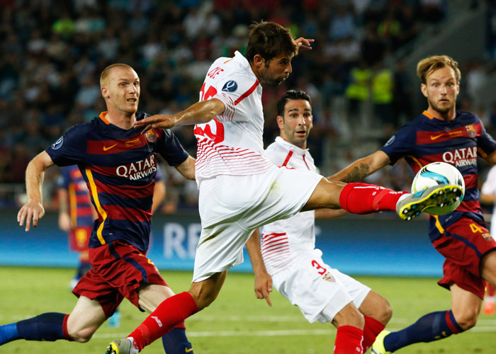 В прошедшем в Тбилиси матче за Суперкубок УЕФА-2015 встретились испанские команды - победитель Лиги чемпионов "Барселона" и триумфатор Лиги Европы "Севилья". В драматичном противостоянии со счетом 5:4 победила "Барселона" и стала пятикратным обладателем трофея, догнав по этому показателю итальянский "Милан"