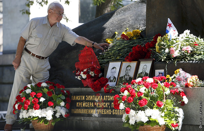 В России проходят памятные мероприятия, посвященные 15-ой годовщине гибели атомной подводной лодки "Курск", затонувшей в Баренцевом море во время учений. Гибель подлодки произошла в результате взрыва торпеды на ее борту в ходе подготовки к условной торпедной атаке. В результате трагедии погибли все 118 членов экипажа.