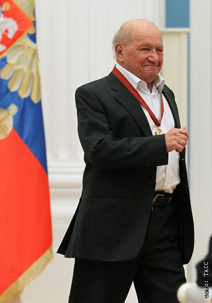 Лев Дуров, удостоенный ордена "За заслуги перед Отечеством" III степени, на церемонии вручения государственных наград в Екатерининском зале Кремля. 2011 год.