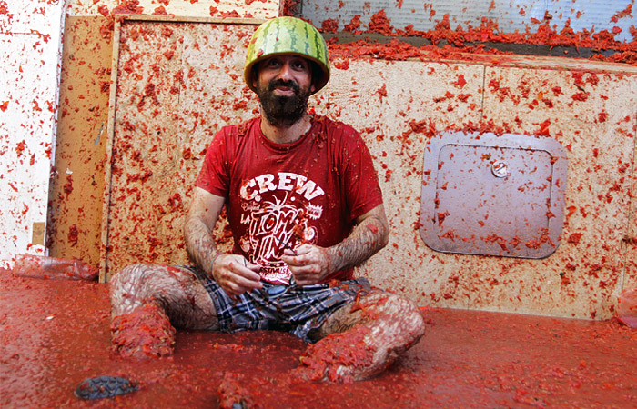 В испанском городе Буньоле недалеко от Валенсии в 70-й раз прошел праздник Ла Томатина, во время которого люди бросают друг в друга помидоры. В мероприятии приняли участие около 45 тысяч человек. Для "побоища" понадобилось семь грузовиков со 175 тоннами спелых томатов.