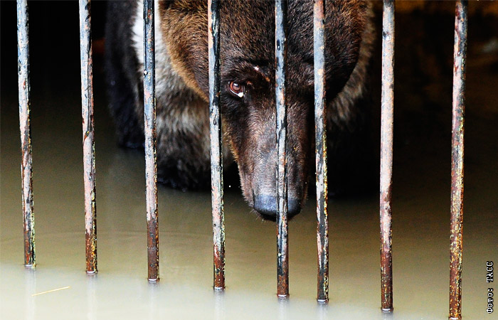 Медведь в затопленном вольере зоопарка "Зеленый остров" в Уссурийске