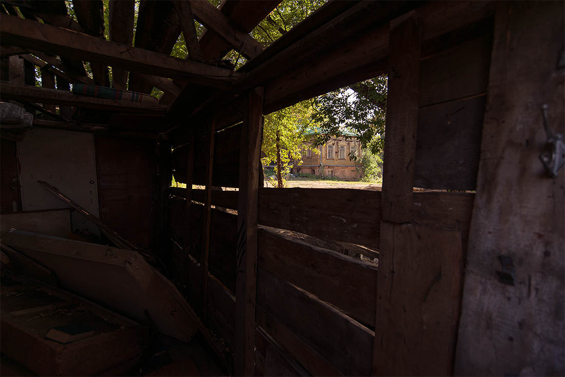 Вид на тот же дом из близлежащих сараев, подготовленных к сносу. Культура "сараестроения" раньше процветала и не только в Москве, встретить самодельные постройки можно было практически в любом дворе, они использовались так же, как гаражи и погребы. Сейчас это уже скорее редкость. По крайней мере - в Москве.