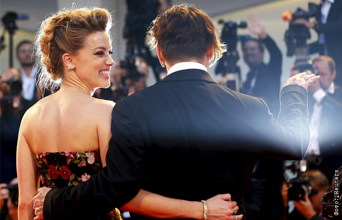 Голливудский актер Джонни Депп с супругой Эмбер Херд перед премьерой фильма "Девушка из Дании"