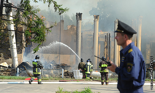 Тушение пожара в павильоне "Ветеринария" на территории ВВЦ.