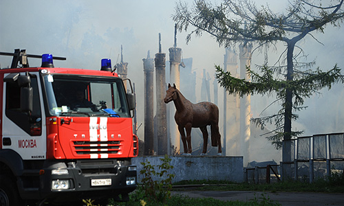 У сгоревшего павильона "Ветеринария" на территории ВВЦ.