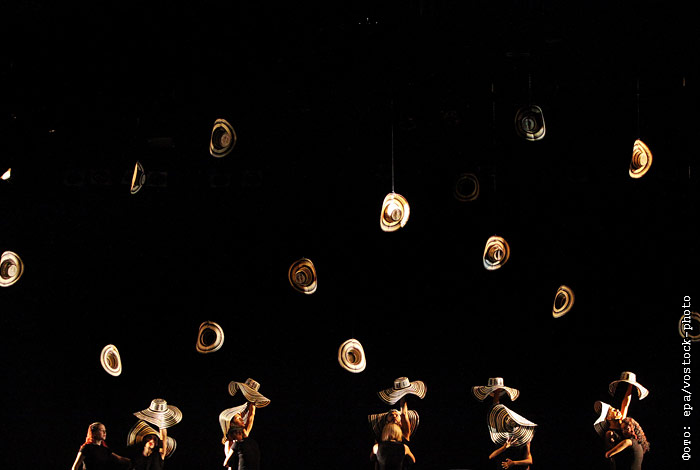 Танцоры исполняют композицию, посвященную покойному колумбийскому художнику Омару Райо