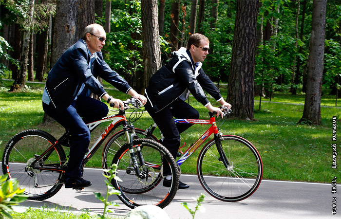Владимир Путин и Дмитрий Медведев во время неформальной встречи в резиденции "Горки"