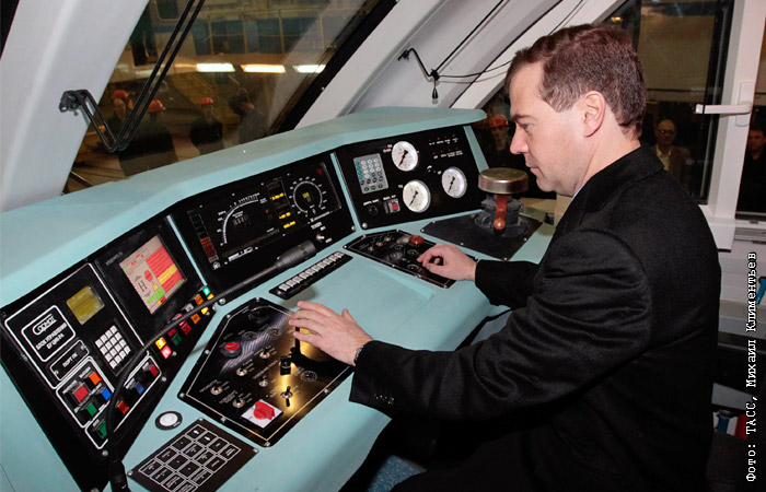 Премьер-министр РФ в кабине машиниста поезда метрополитена