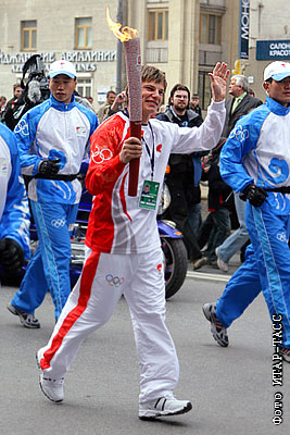 Футболист Андрей Аршавин на эстафете огня летней Олимпиады-2008
