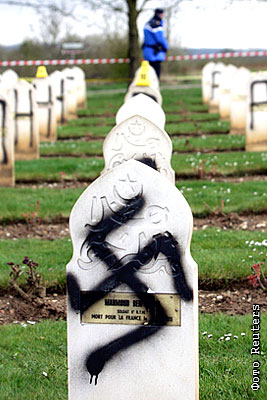 На севере Франции неизвестные осквернили мусульманское кладбище. На надгробиях появились антиисламские лозунги, нацистская символика и лозунги, направленные, в частности, против министра юстиции Франции Рашиды Дати – уроженки Северной Африки.