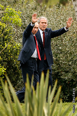 Президенты России и США Владимир Путин и Джордж Буш в резиденции "Бочаров ручей"