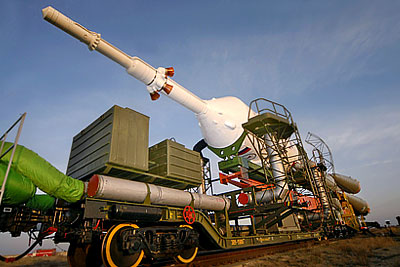 Вывоз РН "Союз-ФГ" с пилотируемым космическим кораблем "Союз ТМА-12" для установки на стартовый комплекс