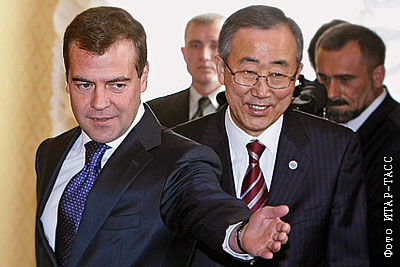 Дмитрий Медведев и генеральный секретарь ООН Пан Ги Мун на встрече в Кремле