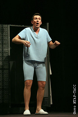 Актер Михаил Владимиров в сцене из спектакля режиссера Ольги Субботиной по пьесе К.Гольдони "Хозяйка гостиницы"