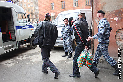 Один из обвиняемых по делу об убийстве 14 девушек (в центре) после оглашения приговора Свердловского областного суда