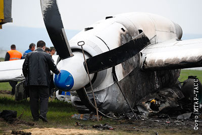 На месте крушения грузового самолета Ан-32 в аэропорту города Кишенев (Молдавия). Погибли 8 человек.