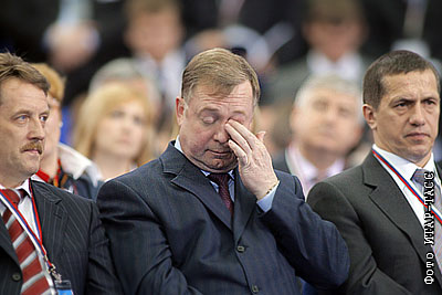 Министр сельского хозяйства РФ Алексей Гордеев, председатель Счетной палаты РФ Сергей Степашин и министр природных ресурсов РФ Юрий Трутнев (слева направо) на съезде в Гостином дворе