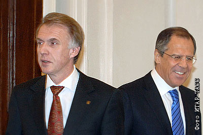 Министры иностранных дел Украины и России Владимир Огрызко и Сергей Лавров на встрече в особняке МИД на Спиридоновке