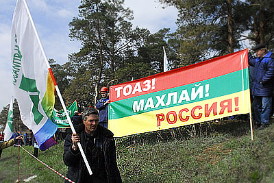 Сотрудники ОАО "Тольяттиазот" (ТоАз) во время акции на федеральной трассе М-5 в защиту предприятия от рейдерского давления