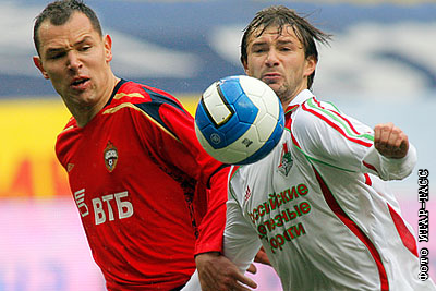 Армеец Сергей Игнашевич и игрок "Локомотива" Динияр Билялетдинов (слева направо) в матче чемпионата России по футболу: ЦСКА (Москва) - "Локомотив" (Москва) - 0:0