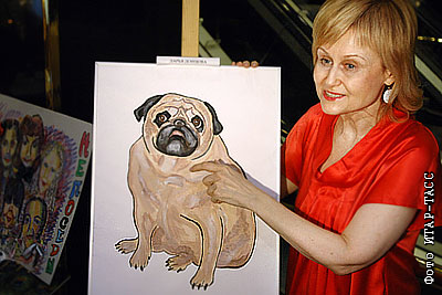 Писательница Дарья Донцова на III ежегодном благотворительном арт-проекте "Звезды рисуют. Автопортрет" в ТЦ "Галерея Актер"
