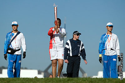 Во время эстафеты на улицах Канберры факел погас дважды. Оба случая были вызваны погодными условиями