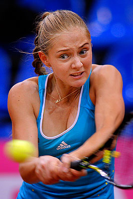 Российская теннисистка Анна Чакветадзе в полуфинальном матче теннисного турнира "Кубок Федераций", в котором она выиграла у американки Вани Кинг со счетом 6:4, 7:5