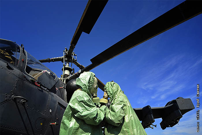 Тренировка по посадке и подготовке вертолета на химически зараженной местности