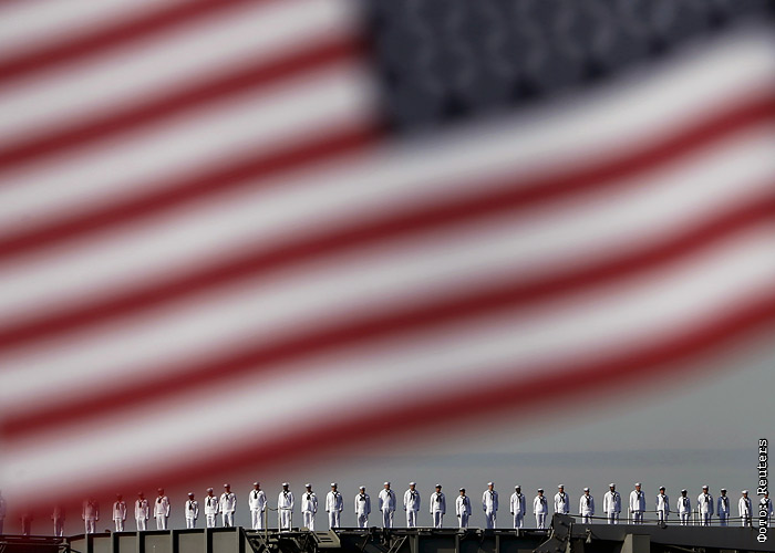 Члены экипажа американского авианосца "Рональд Рейган" на военно-морской базе США в Йокосука. Япония.