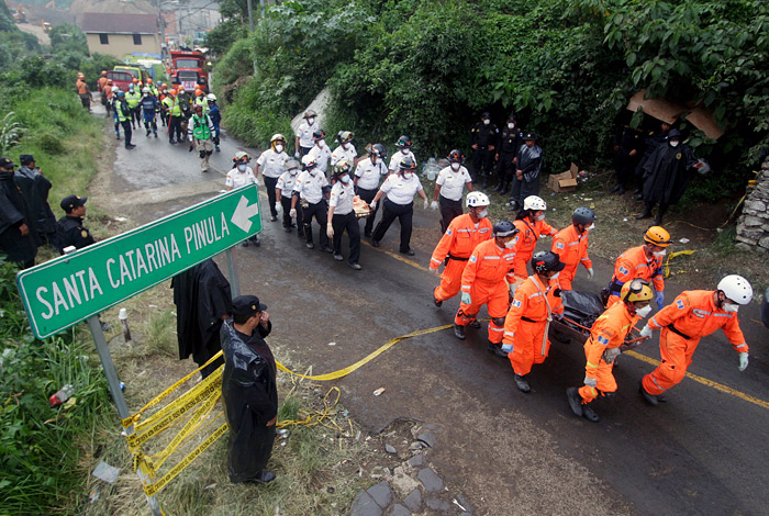 В результате схода селевого потока в Гватемале погибли более 150 человек, около 300 числятся пропавшими без вести. На месте схода оползня работают спасатели и местные жители, раскапывая районы, где погребены жилые дома.