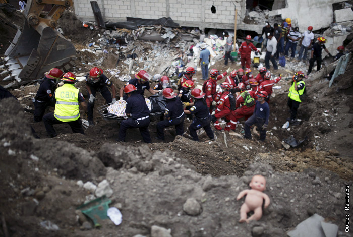 В результате схода селевого потока в Гватемале погибли более 150 человек, около 300 числятся пропавшими без вести. На месте схода оползня работают спасатели и местные жители, раскапывая районы, где погребены жилые дома.